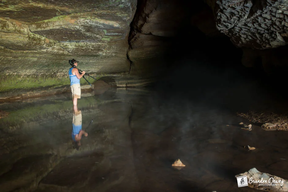 After such a great night where both Mike and I were able to get some great images of the Milky Way at Spruce Knob in West Virginia, we woke up the next morning and went down to the lake. We hiked around the lake looking for other places to set up for that evening. While Mike and I were scouting locations, Bodie was trying to skip some rocks across the lake. No location stood out to us, so we decided that we would drive up to the peak of the mountain that evening to try and get some more Milky Way images. While hiking, we heard some people talking about a cave, and since we had all day to explore, we decided to see if we could find it.